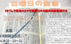 【注】第一朗読は復活節を除き、旧約聖書が朗読されます。因みに、復活節は新約聖書の使徒言行録が朗読されます。また、第二朗読では、新約聖書の中の使徒書と呼ばれる聖書が朗読されます。
